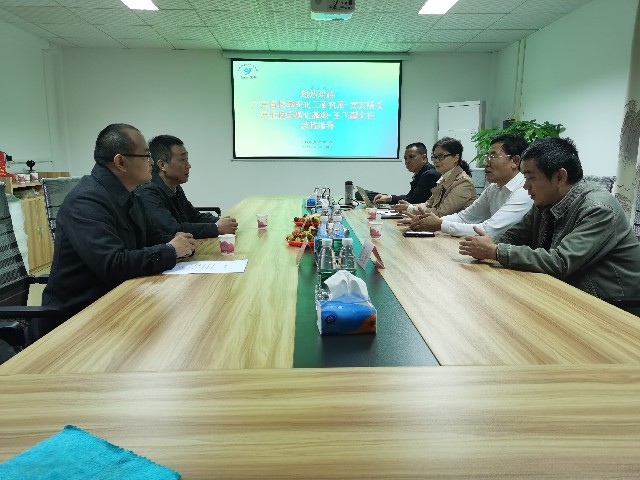 在次日12月12日,廣東省科學(xué)院化工研究所文武所長(cháng)及產(chǎn)業(yè)技術(shù)孵化基地王飛副主任蒞臨我司指導工作,認真聽(tīng)取了我司技改項目的內容報告,并參觀(guān)了公司生產(chǎn)區域,了解我司的生產(chǎn)工藝及設備情況,就雙方的未來(lái)合作方向和內容進(jìn)行了深入的交流和討論。